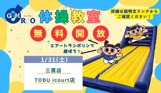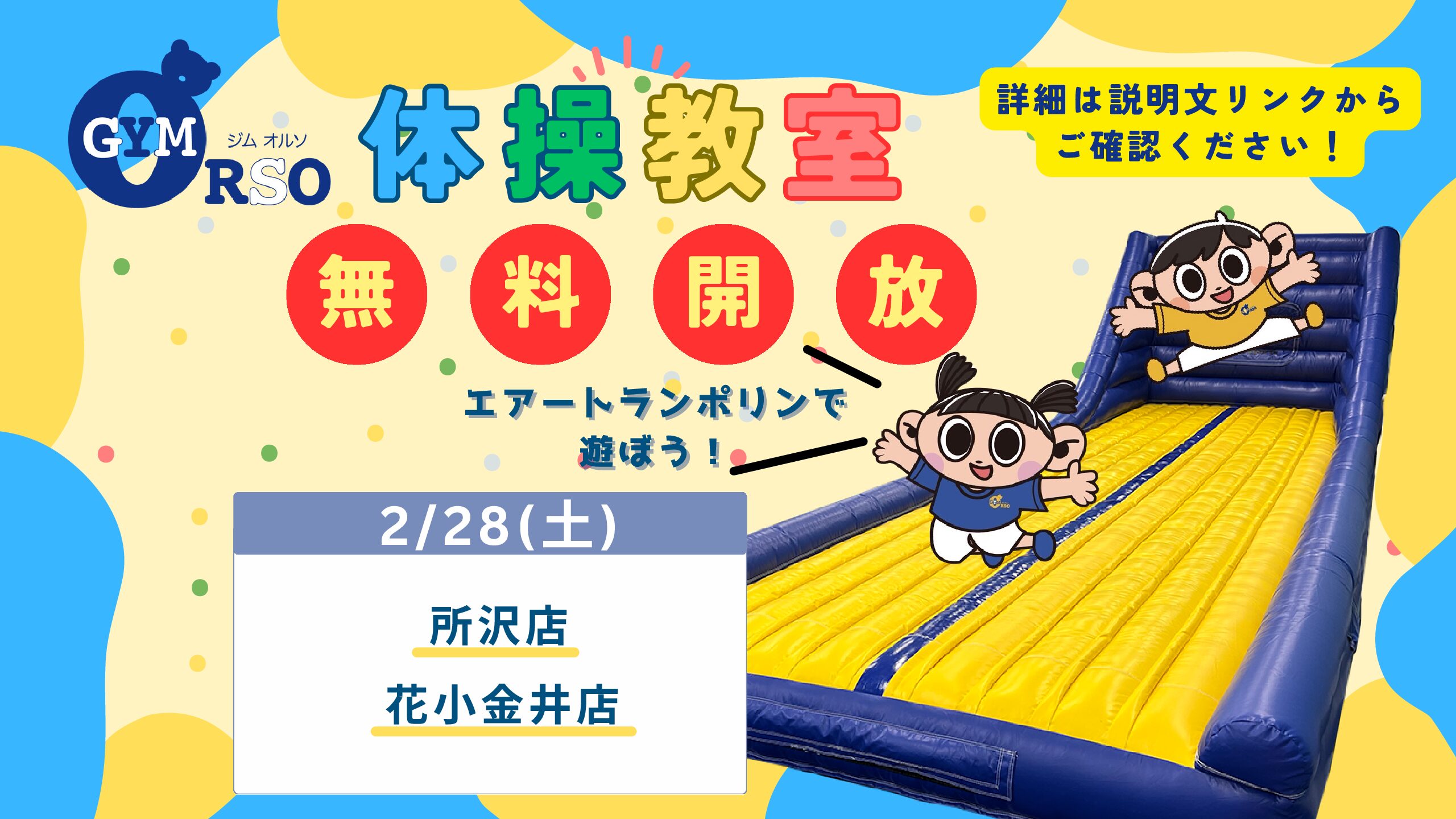 イベントのお知らせ 2/28(土)無料開放開催決定! 2026.02.06 オルソ株式会社ホームページへアクセスいただき誠にありがとうございます。 2/28(土)に教室の無料開放を行います! 詳細は店舗によって異なるため、店舗ページをご覧ください! 所沢店はこちらをクリック! 花小金井店はこちらをクリック! Tweet Share 【東京】子供におすすめの体操教室6選|2歳から通える教室も紹介 前の記事