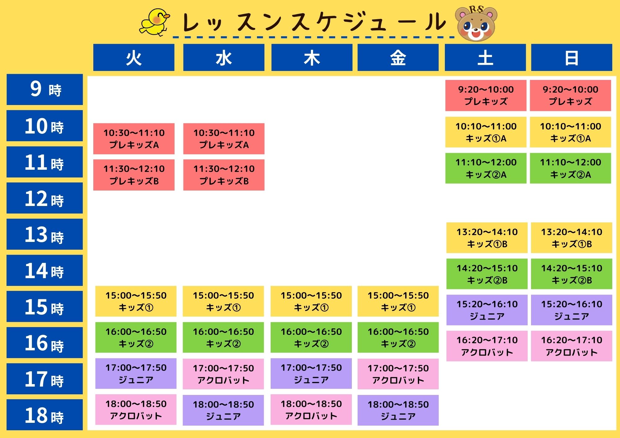 土日1,100円 全クラス割増 各クラス紹介はこちら スケジュールはこちら