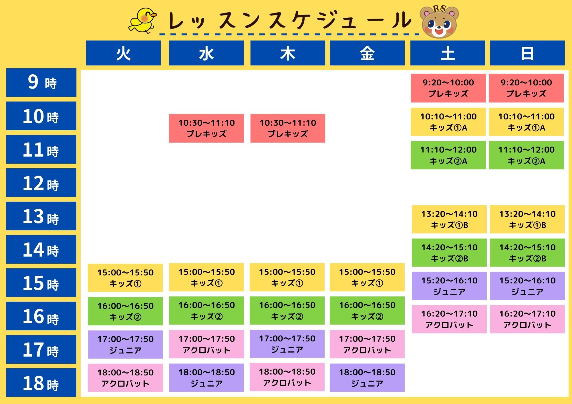 土日1,100円 全クラス割増 各クラス紹介はこちら スケジュールはこちら