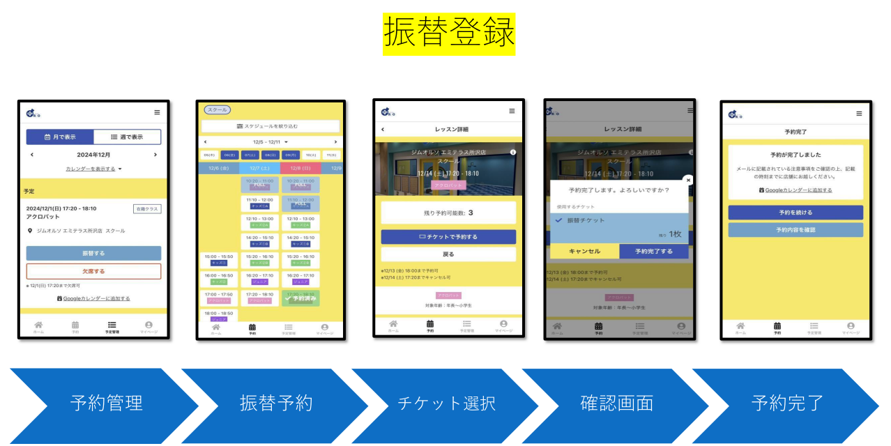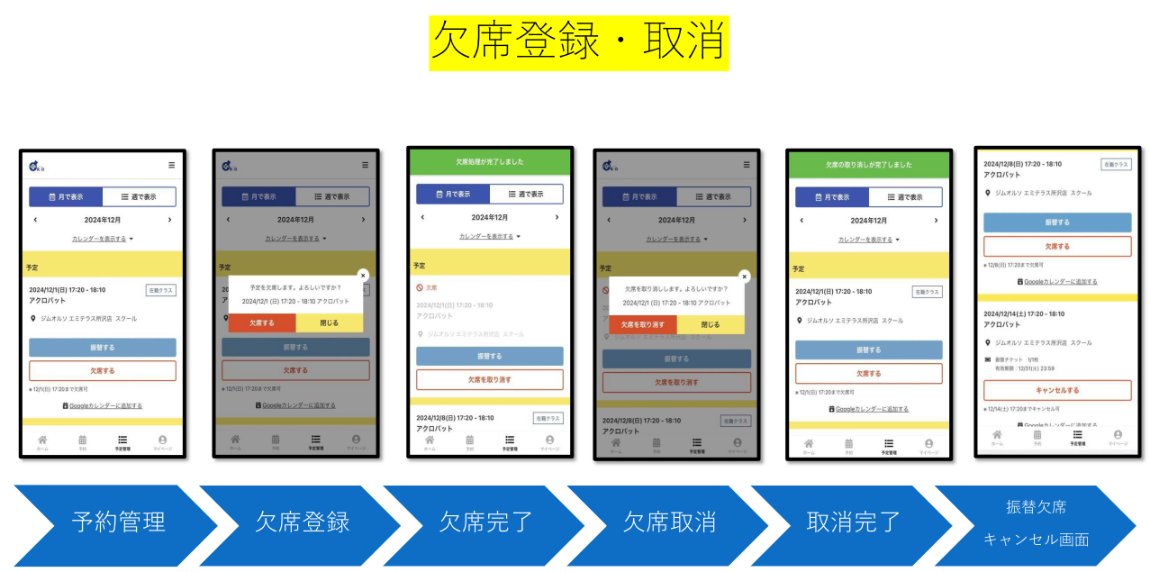 ホーム お振替(欠席)お申し込み INQUIRY ジムオルソお振替(欠席)申込 お振替(欠席)のお申し込みについて お振替(欠席)につきまして下記の注意事項をよくお読みになってからお手続きをお願いいたします。ご不明な点につきましては店舗スタッフへお気軽にお問い合わせください。ご質問に関しましては、お電話またはホームページのお問い合わせフォームからも受け付けております。 注意事項お振替は1ヶ月に2回までとさせていただきます。在籍クラスにて、ご予約ください。お振替の参加可能期間は、お休みした日の当月・翌月中(休館日を除く)とさせていただきます。レッスン開始までにマイページより欠席のご連絡をいただいた場合に限り、お振替対象となります。お振替は希望日の前日18:00 までにご予約ください。希望日が定員の場合は、キャンセル待ち登録をすることが可能です。プラン変更をされた会員様につきましては、欠席日に在籍していたクラスにて振替予約をお願いいたします。 振替期間内にお振替を取得できない場合、いかなる場合も該当の欠席分は消化扱いとなります。 お振替は空き枠があった場合のサービスとし、必ず保証するものではございません。 お申込方法下記のリンクからログインいただきお振替(欠席)のお手続きをお願いします。 マイページ 欠席登録・取消について 振替登録について PAGE TOP 無料体験予約 TEL ご入会申込 お振替申込 休会申込 退会申込 コース変更 お振込み口座について ホーム お知らせ お問い合わせ クラス&料金紹介 店舗紹介 ひばりが丘本店 三鷹店 石神井公園店 イオンスタイル南砂店 所沢店 イオンスタイル碑文谷店 吉祥寺店 浅草ROX店 武蔵小杉店 イオンタウン吉川美南店 荻窪店 オリナス錦糸町店 イトーヨーカドー四つ木店 代官山アドレス・ディセ店 TOBU icourt店 (草加松原) イオン葛西店 大塚店 大島店 エミテラス所沢店 春日井店 コモンズ立川立飛店 井荻店 花小金井店 ジムオルソとは お振込み口座のご案内 会員様の声 教室規約 ジムオルソ求人 会社概要 特定商取引法に基づく表記 プライバシーポリシーについて マイページ
